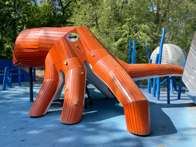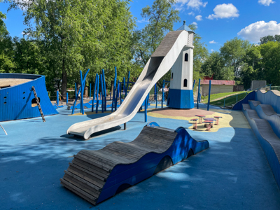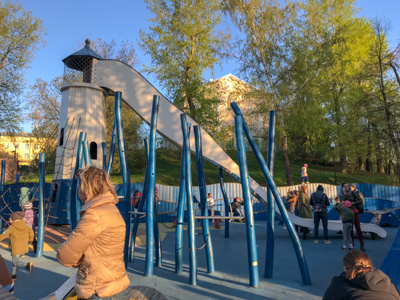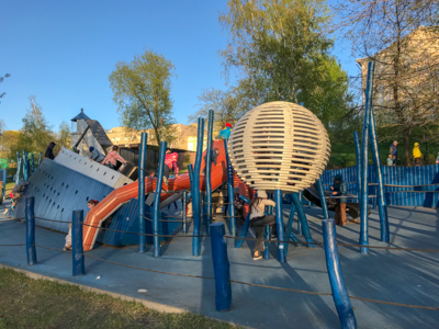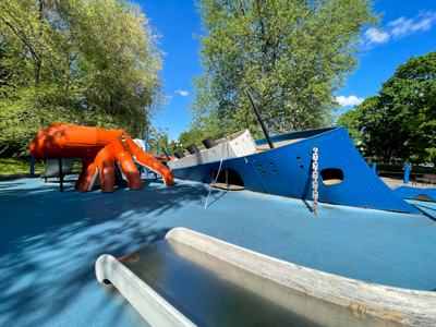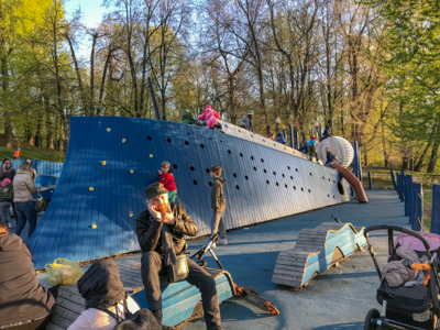 🐙 «Монструм» — тематическая площадка от архитектурного бюро 🇩🇰 Monstrum — автора чертовски крутых детских площадок, в том числе «Космоса» на ВДНХ. Тёмыч с Лёлькой обожают её, как и я. Она просто бомбическая 💣, хотя и небольшая. Здесь есть: 🛳 тонущий лайнер — комплекс для лазания 🐙 гигантский осьминог — комплекс для лазания и горка 🚨 маяк — большая горка и сеточный комплекс для лазания 🐟 рыбки — прыгунки 🌊 лавочки в форме волн 🔺 буй — комплекс для лазания 🔸 качели 🔹 горка для самых маленьких 🤦♂️Самый большой минус площадки — здесь всегда много народа, ОЧЕНЬ много 👫👫👫👫👫 🌳 Часть площадки находится в тени деревьев. 🌯 Прямо рядом с площадкой есть лавка с шаурмой. В целом в парке нет проблем с едой. 🚾 Ближайший туалет — в 50 метрах от площадки. Там же есть комната с пеленальным столиком, но в той же комнате нет унитаза… увы.